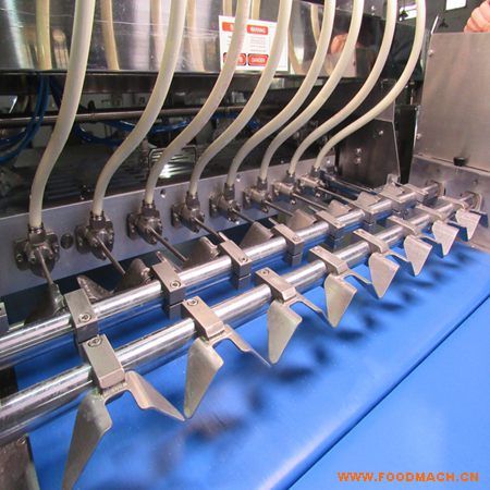 噴油機(jī)、多點(diǎn)成型機(jī)和面團(tuán)成型機(jī)3合1設(shè)備用于制作雙色的小熊蛋糕。*大的產(chǎn)量每小時(shí)大約600公斤,該設(shè)備機(jī)身使用304不銹鋼。