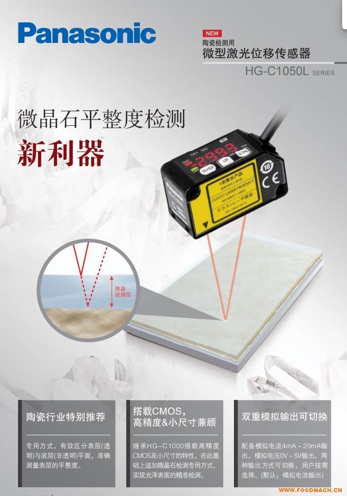 松下超高速、高精度激光位移傳感器HLC2系列利用CMOS工藝技術和將信號處理電路集成于受光元件芯片上的“系統(tǒng)芯片”化技術,獲...
