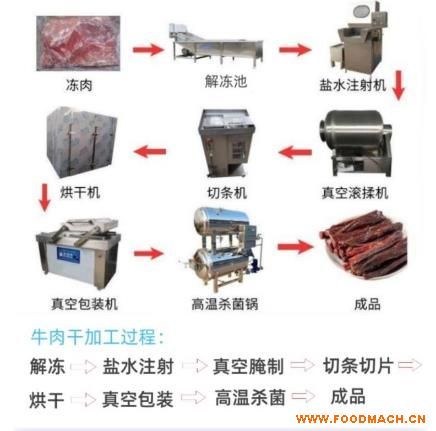 需要的部分設備:牛肉切條切片機鹽水注射機真空滾揉機油炸機