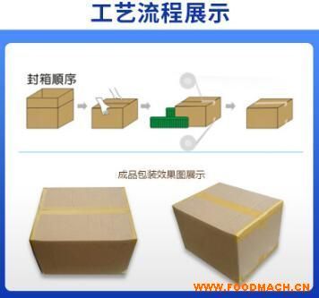 自動(dòng)折蓋包裝一體機(jī),折蓋封箱機(jī),自動(dòng)打包機(jī)封箱口位:上下封口,輸送速度:17.5m/min,膠帶寬度:50-70mm。