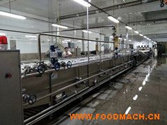 6.水循環(huán)由出料端往進(jìn)料端循環(huán),使殺菌溫度更均衡,循環(huán)水泵前邊加有過(guò)濾系統(tǒng),以防止槽內(nèi)雜質(zhì)抽到泵中,長(zhǎng)時(shí)間在殺菌(冷卻)槽內(nèi)循環(huán)。