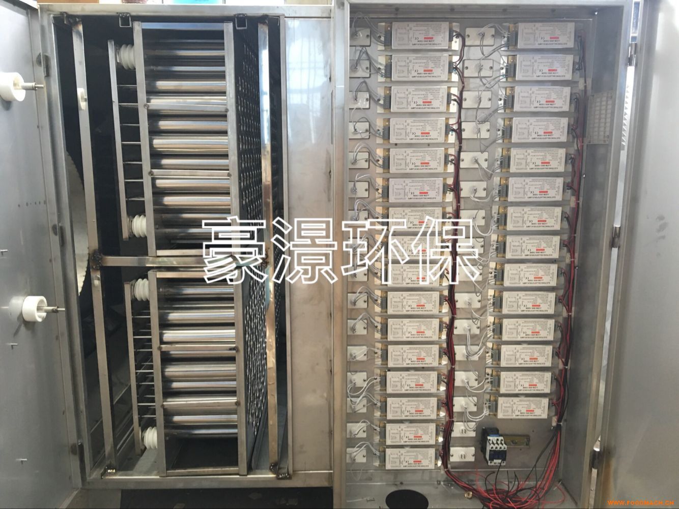 2;設(shè)備使用中請勿開啟正面紫外線檢修門,本機(jī)集中裝配20支紫外線燈,