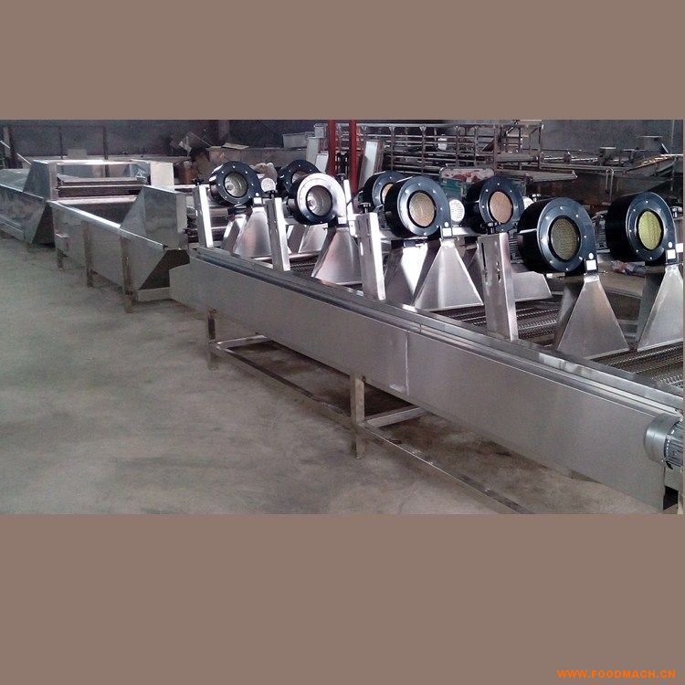 軟包裝風(fēng)干機(jī) 包裝袋除水設(shè)備的板材我們公司用的是SUS304不銹鋼板材,網(wǎng)帶絲粗1.5mm,板厚1.5mm,電壓是380V。功率:每臺風(fēng)機(jī)的功率是0.75KW,一排兩個風(fēng)機(jī),以這臺設(shè)備6米為準(zhǔn),需要六排風(fēng)機(jī)。
