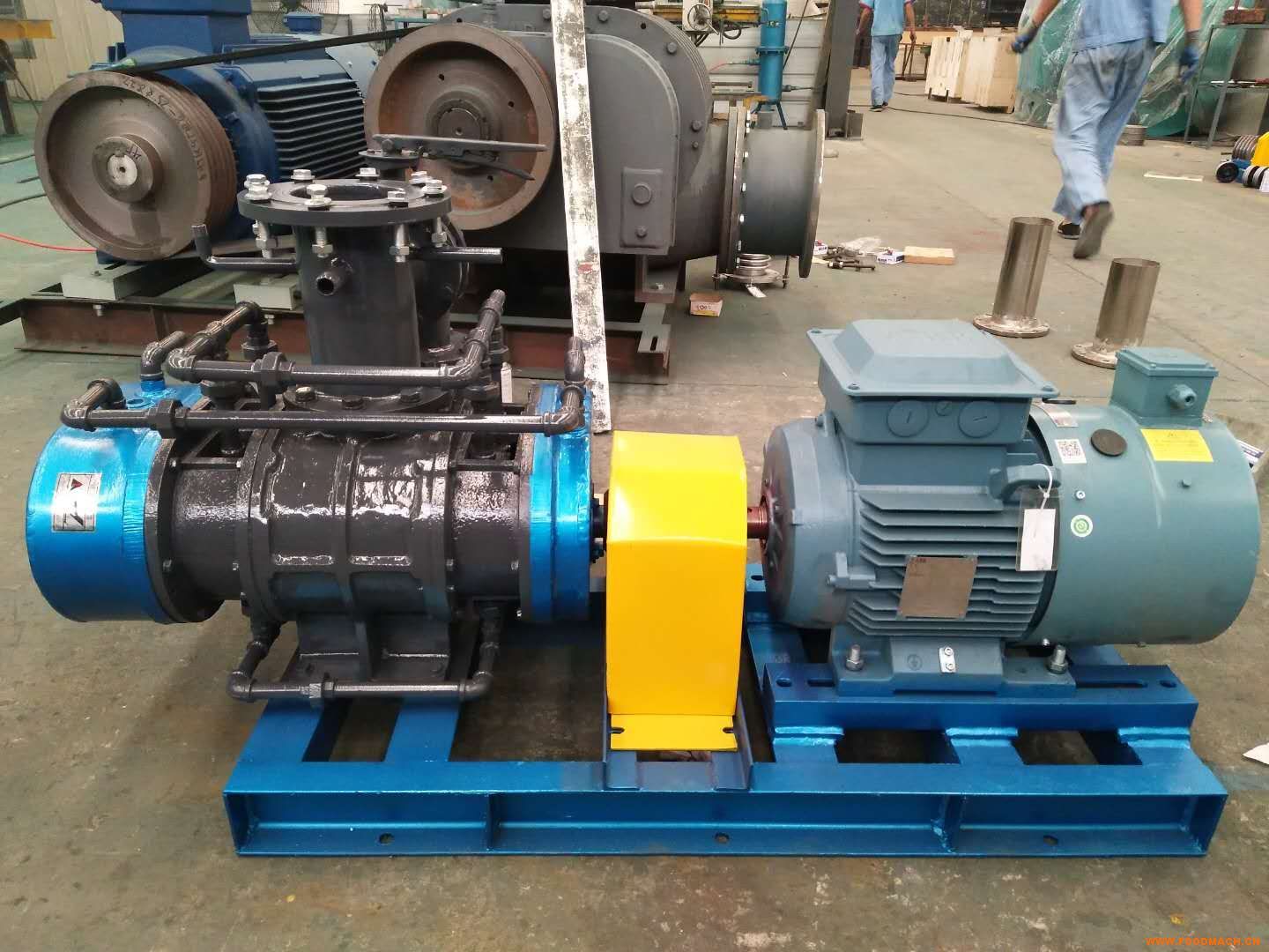 山東瑞拓高穩(wěn)定羅茨式MVR蒸汽壓縮機(jī),蒸汽壓縮機(jī)采用特殊雙機(jī)械水密系統(tǒng),達(dá)到蒸汽壓縮機(jī)完全無泄漏運(yùn)行。實(shí)踐證明該密封系統(tǒng)設(shè)計(jì)完全可以在臨界氣體的應(yīng)用中實(shí)現(xiàn)無故障運(yùn)轉(zhuǎn)。蒸汽壓縮機(jī)采用雙頭潤滑油郵箱潤滑,更好地提高了蒸汽壓縮機(jī)軸承及齒輪的使用壽命,避免了原傳統(tǒng)機(jī)型采用黃油潤滑的缺點(diǎn)。維護(hù)時(shí)易保養(yǎng)觀察,避免了蒸汽壓隨機(jī)在運(yùn)行時(shí)出現(xiàn)的斷油燒軸承及齒輪的情況。蒸汽壓縮機(jī)材質(zhì)采用整體鑄鐵(雙相不銹鋼或鈦鋼)制造,鑄鐵壓縮機(jī)內(nèi)墻整體圖特殊涂層,特殊涂層防腐效果稍低與鈦原材質(zhì),但扛氣蝕、水蝕、沖刷能力高于鈦材。特殊涂層能達(dá)到長時(shí)間使用效果,能減輕投資成本,如純鈦材或者雙相不銹鋼制造的蒸汽壓縮機(jī)投資成本相當(dāng)重。蒸汽壓縮機(jī)溫度控制是采用進(jìn)口處噴頭噴霧狀水來控制出口要求的溫度。產(chǎn)生穩(wěn)定的飽和蒸汽,有效的調(diào)節(jié)出口溫度。蒸汽壓縮機(jī)電機(jī)全部采用變頻電機(jī),這樣可以根據(jù)實(shí)際處理量來調(diào)節(jié)處理量的大小。變頻電機(jī)在起停系統(tǒng)中起到良好的作用。
