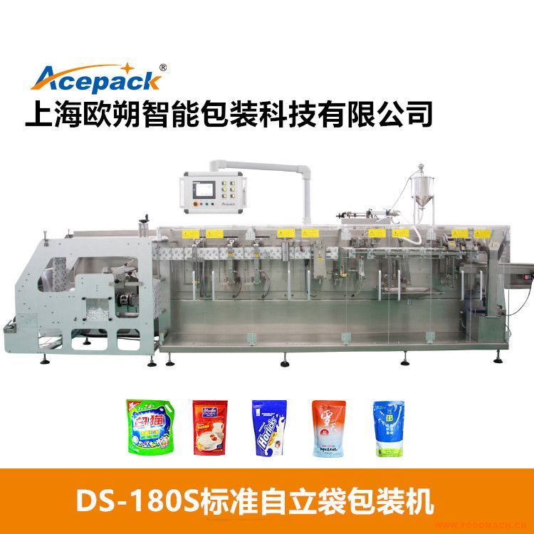 上海歐朔生產(chǎn)的DS-180S標(biāo)準(zhǔn)自立袋包裝機(jī)通過使用各種可熱封的多層復(fù)合膜,可實(shí)現(xiàn)自立袋成型,填充。密封的全自動(dòng)流程,配備我們的灌裝或上下料系統(tǒng),可以填充粉末類,液體類或顆粒類,本公司生產(chǎn)的自立袋包裝機(jī)可適用于不同的包裝對(duì)象和包裝袋外形尺寸。袋形是普通自立袋,異型,掛孔,選用不同形式的充填機(jī),可包裝不同的產(chǎn)品。
