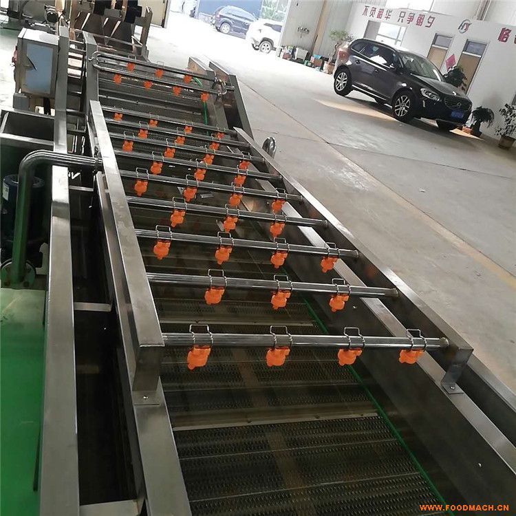 1、設備除電機、軸承等標準件外均采用SUS304不銹鋼制作,完全符合出口食品衛(wèi)生要求。設備中設有氣泡發(fā)生裝置,使物料呈翻滾狀態(tài),去除產(chǎn)品表面農(nóng)殘的功效,同時可加入適量的藥劑,進行消毒固色。漂浮物可以從溢流槽溢出,沉淀物從排污口排出,以達到清洗的目的。該設備在氣泡、提升、噴淋等聯(lián)合工作下,具有清潔度高,節(jié)能、節(jié)水、設備穩(wěn)定可靠能保持原有色澤等特點。是蔬菜、食品加工、餐飲等行業(yè)的理想設備。