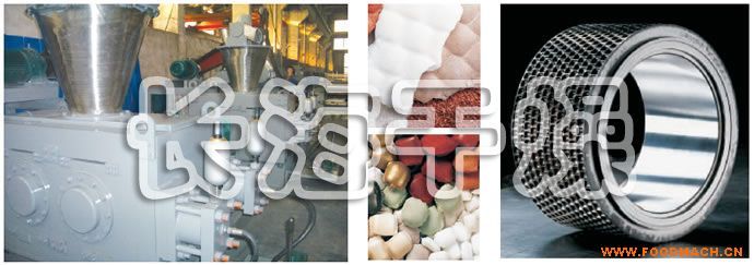擠壓造粒的形式可以有對(duì)輥式和輪輾式兩種,對(duì)輥式擠壓是先壓成大塊,再破碎成顆粒,這樣裝置的能力大、顆粒強(qiáng)度高、能耗低,對(duì)輥擠壓在國(guó)外使用廣泛。輪輾式是在輥表面直接做成有穴槽型的形狀,一次擠成成型顆粒。產(chǎn)品強(qiáng)度較低有時(shí)需添加粘結(jié)劑。適合做有機(jī)肥和復(fù)合肥等顆粒肥料。