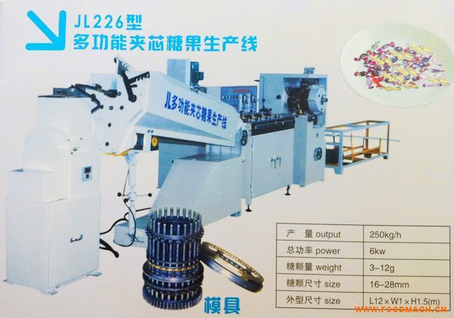 產品關鍵詞:JL226型多功能夾 多功能夾芯糖果生產線 糖果生產線 夾芯糖果生產線