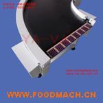 轉(zhuǎn)彎皮帶輸送機扇形皮帶加裝專用的防跑偏滾輪 (軸承外加聚甲醛POM)或者在輸送帶的外側(cè)高頻焊接導(dǎo)向筋使輸送帶運行在專用的導(dǎo)軌中,輥筒采用專用的錐型包膠輥筒,廣泛應(yīng)用在食品、飲料、電子、等行業(yè),我們可以選用較小直徑的滾筒,使轉(zhuǎn)角連接更加方便,的解決過渡問題。