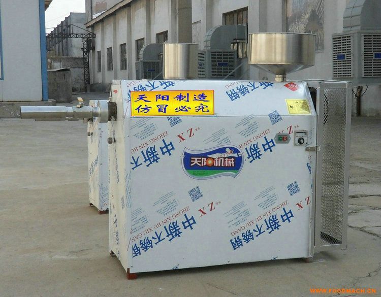 蝦片又稱玉片、薯蝦片,蝦味薯片、蝦棒,是用蝦粉加淀粉加工而成的,是一種價格便宜、味道鮮美的油炸膨化食品,酥脆可口,營養(yǎng)豐富,嚼起來有一種獨特的清香風(fēng)味其獨特之處,很受消費者喜愛,尤其是五彩蝦片更受小朋友們的青睞。天陽自熟成型蝦片機為機電一體化設(shè)計,由水浴蒸箱、電熱裝置、螺旋絞龍、成型模具和電機組成,性能穩(wěn)定,一機多用,生產(chǎn)過程無煙塵排放,環(huán)保*,安全衛(wèi)生,解決了手工制作費時費力的問題。天陽自熟成型蝦片機(蝦棒擠出機)采用電加熱電子自動控溫蒸煮熟化成型新工藝,蝦粉、淀粉、水按一定比例攪拌均勻后,加入蝦片機的料斗內(nèi),電機帶動的螺旋攪龍把進入機器的的粉漿向前推進,并通過絞龍外圍的蒸箱里的熱水,把粉漿蒸煮熟化,由模具定型成細(xì)膩爽滑,富有彈性的圓柱形或橢圓形蝦棒,冷卻后再用切片切成薄片后,烘干或晾干即為成品,食用油炸即可。天陽自熟成型蝦片機6FT-140型,適用7.5KW1440轉(zhuǎn)380V電機,加熱器功率12KW,生產(chǎn)效率:150-180公斤/小時,價格:普鋼主軸型5600元,不銹鋼主軸型9200元。6FT-260型,適用15KW1440轉(zhuǎn)380V電機,加熱器功率24KW,生產(chǎn)效率:400公斤/小時,價格:普鋼主軸型13800元,不銹鋼主軸型18600元。配套設(shè)備:調(diào)速皮帶輸送機采用食品級PVC輸送帶,長2.8米,寬0.35米,調(diào)速電機功率120W,價格4800元,電動切蝦片機TYQ-AK型,切刀寬度30cm,切片速度400公斤/小時,電機功率1.5KW,價格4960元。天陽-吳奇歡迎您的光臨!WX:tyxsk6168