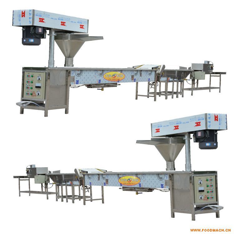 流水線型由土豆粉機(jī)、煮粉槽、冷卻槽,風(fēng)冷式數(shù)控切段機(jī)組成,TFH-150型,主機(jī)動力4.5KW,煮粉加熱器24KW,產(chǎn)量300-400公斤/小時,價格14800元/套。