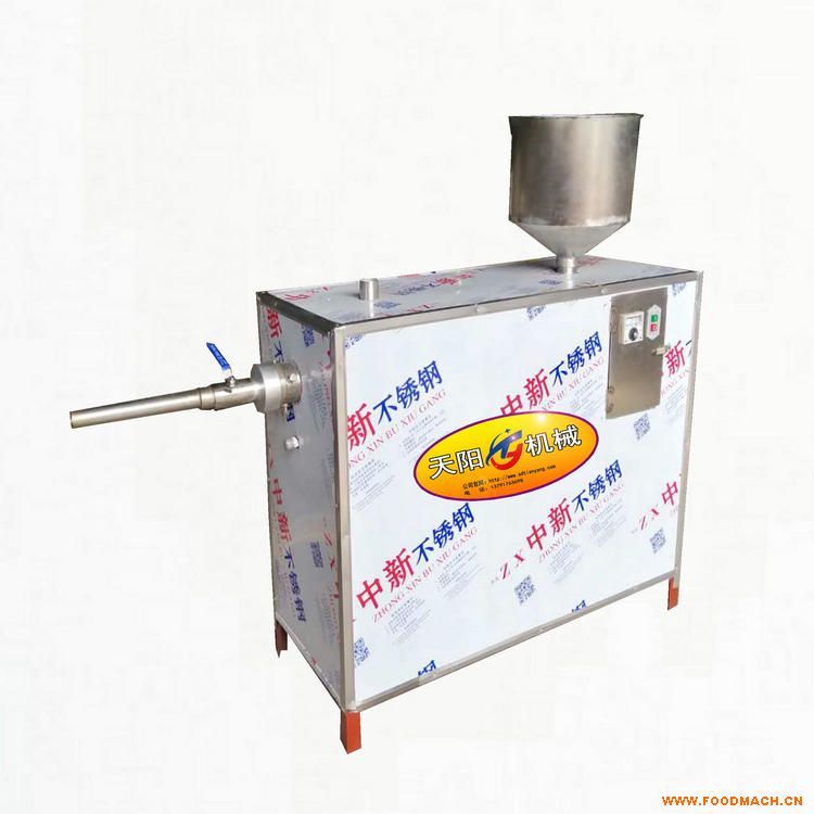 米豆腐是風(fēng)味獨(dú)特的小吃,有塊狀的,也有柱狀的,它是用大米淘洗浸泡后加水磨成米漿,通過機(jī)器熟化后冷卻形成的大米面食,既可冷食也可熟食,含有多種維生素,具有清熱敗火,解渴爽口等作用,夏日更兼清熱解暑、解饞、解困、提神、消暑等作用,是人們喜愛的一種米制食品。天陽米豆腐機(jī)結(jié)構(gòu)新穎、操作簡單、節(jié)省能源、耗電少,采用智能溫控熟化成型新工藝,米漿經(jīng)水箱里的熱水水浴熟化,再由螺旋絞龍擠壓聚合而成,出機(jī)即熟,一次成型,無須再蒸煮,不存在傳統(tǒng)工藝中的糊鍋、焦鍋現(xiàn)象。用天陽米豆腐機(jī)生產(chǎn)加工的米豆腐色澤潤綠明亮,口感清香、軟滑細(xì)嫩。在0 ℃ ~25℃溫度下存放3 天仍能保持新鮮不變質(zhì)。天陽米豆腐機(jī)一機(jī)多用功能多,可以還使用各種淀粉或面粉生產(chǎn)加工粉條,粉絲,粉皮,扁粉,川粉,肥羊粉,河粉,卷粉(腸粉)涼皮、涼粉、東北大拉皮、面皮、酸漿米線、酸漿馇條等,是專為照明電用戶,市場門面現(xiàn)加工戶設(shè)計(jì)生產(chǎn)的新型米面食機(jī)械。天陽米豆腐機(jī)型號(hào)6FT-60適用動(dòng)力2.2KW(220V),產(chǎn)量50公斤/小時(shí),外型尺寸: 120*48*115cm,重量65公斤,普通型價(jià)格3600元/臺(tái),不銹鋼型5800元/臺(tái),6FT-140型,適用動(dòng)力7.5KW,產(chǎn)量150-180公斤/小時(shí),價(jià)格:普通型4500元,不銹鋼型7800元,6FT-260型,適用動(dòng)力13-15KW,產(chǎn)量500-600公斤,價(jià)格:普通型9800元,不銹鋼型15800元(不含電機(jī)和運(yùn)費(fèi))。另供皮帶輸送式氣動(dòng)延時(shí)切段機(jī),價(jià)格4800元/臺(tái)。歡迎來人到廠參觀考察。售后服務(wù):購機(jī)免費(fèi)傳授技術(shù),辦理物流托運(yùn),機(jī)器兩年內(nèi)因質(zhì)量問題非人為損壞的零配件免費(fèi)郵寄更換。