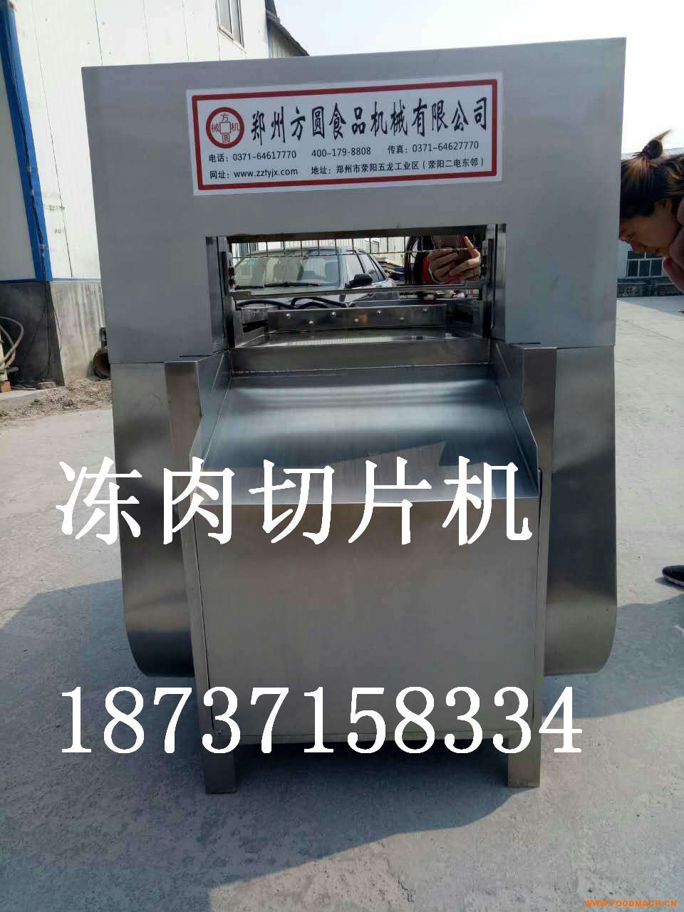 鄭州方圓機械凍肉切片機,可將凍肉在不解凍的前提下(50斤/盤)直接上機切成任意厚度的段或薄片,供絞肉機、斬拌機加工使用。本機外殼采用噴塑和不銹鋼制造,切刀用特殊鋼制成,耐磨,耐用。外形美觀,結構簡單,維修方便,速度快、效率高、價格低、省時省力等特點。替代了人工坎肉、大大降低了勞動強度,是肉食品加工企業(yè)不可缺少的設備。并能將脊骨、肉排斬斷,一機多用,更是您的理想選擇。