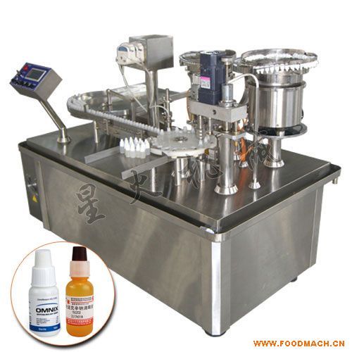 眼藥水灌裝旋蓋一體機(jī)多用于碘酒、風(fēng)油精、滴眼液、酊劑產(chǎn)品的生產(chǎn)灌裝中,此機(jī)速度高、自動(dòng)平穩(wěn)、合格率高,沖內(nèi)塞和沖外塞均有專用模具和機(jī)構(gòu),合格率高,傳動(dòng)機(jī)構(gòu)用偏心凸輪傳動(dòng),聲音小,壽命長、內(nèi)塞料斗和外蓋料斗采用雙軌道或單軌道均可,適用于高產(chǎn)量的眼藥水產(chǎn)品生產(chǎn)