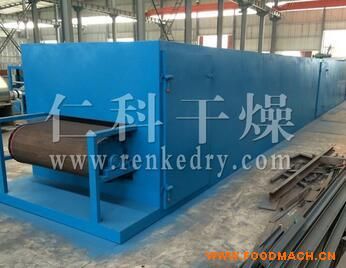 物料由加料器均勻地鋪在網(wǎng)帶上,網(wǎng)帶一般采用12-60目不銹鋼絲網(wǎng),由傳動(dòng)裝置拖動(dòng)在干燥機(jī)內(nèi)移動(dòng)。干燥機(jī)由若干單元組成,每一單元熱風(fēng)獨(dú)立循環(huán),部分尾氣由專(zhuān)門(mén)排濕風(fēng)機(jī)排出,廢氣由調(diào)節(jié)閥控制,熱氣由下往上或由上往下穿過(guò)鋪滿(mǎn)物料的網(wǎng)帶完成熱量與質(zhì)量傳遞的進(jìn)程,帶走物料水份。網(wǎng)帶緩慢移動(dòng),運(yùn)行速度可根據(jù)物料溫度自由調(diào)節(jié),干燥后的成品連續(xù)落入收料器中。上下循環(huán)單元根據(jù)用戶(hù)需要可靈活配備,單元數(shù)量亦可根據(jù)需要選取。