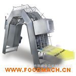冷片輸送鏈的運(yùn)行節(jié)奏與烘烤爐威化餅餅片脫模節(jié)奏一致。餅片輸送采取直立的方式,縮短輸送距離,延長風(fēng)冷的時(shí)間,從而節(jié)省了設(shè)備的占用空間。橋式設(shè)計(jì)方便了生產(chǎn)人員的工作通行。