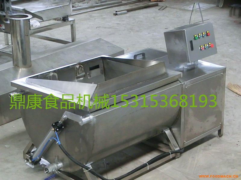 7、采用該油炸設(shè)備,在油炸過程中產(chǎn)生的食品殘?jiān)赏ㄟ^水的過濾沉入低部漏斗處,經(jīng)排污口排出,這樣既達(dá)到了過濾油的作用,而且不浪費(fèi)油。