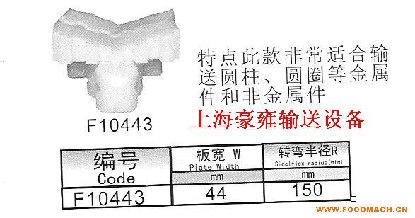 上海豪雍傳送設(shè)備有限公司在制造模塊輸送網(wǎng)帶、塑料鏈條、塑料鏈板、模塊網(wǎng)帶輸送機等方面,我廠已經(jīng)成為行業(yè)的*。數(shù)十年來,累計了豐富的生產(chǎn)制造經(jīng)驗,造就了一支觀念現(xiàn)代,長于技術(shù),精于管理的人才隊伍,逐漸形成了一套優(yōu)化高效的運行機制。產(chǎn)品行銷全國各地,在質(zhì)量信譽方面深受用戶好評! 經(jīng)營范圍:各類模塊輸送網(wǎng)帶、不銹鋼鏈板、網(wǎng)帶輸送機、塑料鏈條,塑料鏈板,龍骨鏈,鋼基鏈,不銹鋼鏈板,齒形鏈,箱格鏈。輸送配件。 網(wǎng)帶材質(zhì):耐腐蝕性、耐酸堿性、耐高溫性,及其他特殊線材等等本產(chǎn)品具有高強度、耐酸、堿、鹽水等特點,溫度范圍廣、防粘性佳,可加檔板,提升角度大,容易清洗,維修簡單?捎糜诟鞣N環(huán)境下的輸送。如飲料行業(yè)、食品行業(yè)、包裝行業(yè)、日用化工行業(yè)、汽車行業(yè)、物流行業(yè)、娛樂設(shè)施、傳動輸送帶、輸送機設(shè)備等,尤其適應(yīng)食品行業(yè)的輸送輸送帶:塑料鏈板輸送帶、冷凍食品輸送帶、蓄電池行業(yè)輸送帶、果蔬食品輸送帶、水產(chǎn)肉類輸送帶、休閑食品輸送帶、包裝行業(yè)輸送帶、物流行業(yè)輸送帶、娛樂設(shè)施行業(yè)輸送帶。輸送機:提升輸送機、螺旋輸送機、轉(zhuǎn)彎輸送機、鏈板式輸送機、分道輸送機、屠宰分割輸送機、糕點類輸送機、餐廳輸送機;蔬菜清洗輸送機、汽車行業(yè)輸送機等各類輸送機;各類輸送機配件、塑料鏈板、塑料鏈輪。 1、以上均為標(biāo)準(zhǔn)材質(zhì),若有特殊場合與用途,如強酸,防靜電耐強擊等,本公司均可提供。 2、我司有專業(yè)技術(shù)人員提供詳細(xì)咨詢,歡迎新、老客戶來電咨詢。